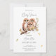 Cute baby shower features illustration of fluffy owls on a tree branch, in gender neutral colour. Personalised with your own text. Use Edit Design feature to change font size, style or colour. Check out the whole collection for invitations, matching favour bags, stickers, thank you cards, banner and more…