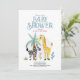 This cute and modern baby shower invitation design features a zebra and giraffe cartoon, with a matching safari animal pattern on the back, and can be personalised with the parent's names and other details necessary for your party. The perfect addition to your co-ed couples' safari baby shower.