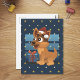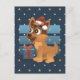 Design with illustration of cute German Shepherd with a present on a starry night dark blue background, illustrated by Radka2D