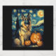 Cute German Shepherd Dog Halloween Jack O Lantern Pumpkin Face Starry Night Van Gogh Style
