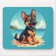 Cute German Shepherd Puppy Beach Illustration Mouse Pad