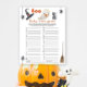 Featuring cute watercolor of baby ghost and Halloween aesthetics. A little boo is almost due! Halloween themed baby shower with watercolor ghost, black cat, witch's hat, magic mop ( broomstick ), spider hanging from a web. The little ghost is eating a lollipop.