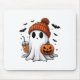 Cute Ghost Drinking Coffee Halloween Ghost Ice Cof Mouse Pad