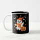 Cute Ghost Drinking Ice Coffee Halloween Two-Tone Coffee Mug