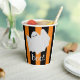 Add some festive fun to your Halloween party with these paper cups featuring a cute cartoon ghost who says "boo!". With a bright and modern orange and black stripe background, these cups are sure to be a hit at your gathering. Great for both kid and adult Halloween parties, or even fall/October birthday events. May be personalised with your own text, if you wish.