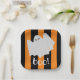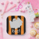 Cute Ghost Halloween Orange and Black Stripes Paper Plate