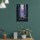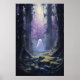 Beautifully spooky purple wall art featuring a ghost wandering in the forest at dawn.