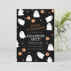 Cute Ghost & Pumpkin Black Halloween Party Invitation