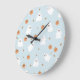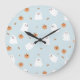 Cute Ghost & Pumpkin Blue Halloween Pattern Large Clock