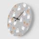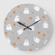 Cute Ghost & Pumpkin Grey Halloween Pattern Large Clock