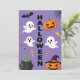 Adorable ghosts, pumpkins, and candies make this the perfect invitation for a fun kids’ Halloween party.