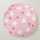 Cute Ghost & Pumpkin Pink Halloween Pattern Round Cushion