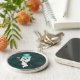 This key chain has a cute ghost with a silly face who is wearing a fancy blue top hat and holding a black cane with a skull trimmed in gold. He is floating in a night sky splattered with tiny white stars.
