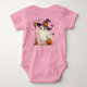 Dress your little one in spooky-sweet style with this adorable Halloween baby bodysuit! Featuring a smiling ghost in a purple witch hat holding a broom and pumpkin bucket, surrounded by bats, autumn leaves, and crescent moons. Soft, comfy, and perfect for Halloween parties, trick-or-treat photos, or cosy fall days. A charming gift for baby’s first Halloween.