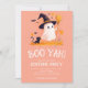 As the crisp October air rolls in and fall leaves crunch underfoot, it's time to summon all the little ghouls and goblins for a hauntingly good time with this dazzling Cute Ghost Witch Kids Halloween Costume Party Invitation. Featuring a charming ghost witch and her cat in pastel colours, this cute Halloween invite strike just the right balance between cute and eerie. Your little monsters won't be able to resist the call of this bewitching costume party. So grab your broomsticks and fly on over – it's time to make some magical memories this Halloween! Send out these enchanting invitations today and watch the excitement brew for a night your kids will never forget!