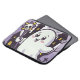A charming and whimsical poster featuring a cute ghost holding a spooky magic wand adorned with a skull. The background showcases a haunted castle with towering turrets and bats flying around, all enveloped in a soft purple hue. This delightful blend of cute and spooky elements makes it a perfect addition to Halloween decor or to bring a playful mystery to any space.