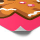 A cute illustration of a brown gingerbread man cookie. Soft pink buttons and squiggly frosting accents on his arms and legs. A festive and fun theme for the christmas holiday season.