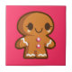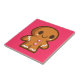 A cute illustration of a brown gingerbread man cookie. Soft pink buttons and squiggly frosting accents on his arms and legs. A festive and fun theme for the christmas holiday season.