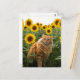 Cute ginger cat in sunflowers field Postcard for Postcrossing