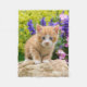 A lovely kitten on a rock in a flowery garden. A cute young redtabby baby cat with wonderful blue eyes, photo taken by Katho Menden. This comfy fleece blanket is a gift idea for cat and pet lovers. http://www.zazzle.com/kathom_photo