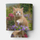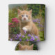 A lovely and enchanting kitten playing with flowers in a garden. A cute charming baby cat with wonderful blue eyes, photo taken by Katho Menden. This can cooler is a gift idea for cat and pet lovers. http://www.zazzle.com/kathom_photo