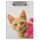 A curious red tabby kitten is watching you, peering from behind a flowering bougainvilla with prying eyes, portrait. This acrylic clipboard is a gift idea for cat and pet lovers. A cute ginger kitty portrait photo taken by Katho Menden. http://www.zazzle.com/kathom_photo - Personalise it with your name or text.