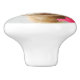 A curious red tabby kitten is watching you, peering from behind a flowering bougainvilla with prying eyes, portrait. This ceramic knob for decorating furniture is a gift idea for cat lovers. A cute ginger kitty photo taken by Katho Menden. http://www.zazzle.com/kathom_photo