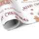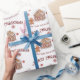 This festive custom Christmas or holiday wrapping paper features a wholesome gingerbread theme. An image of a gingerbread house is pictured in the centre, with a cute little gingerbread man to the left. Little red snowflake cookies are snowing from the sky. A sample Merry Christmas greeting is printed above the tree and a sample family name is printed below. You can personalise the gift wrap to include your own custom name or text.