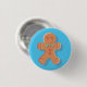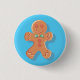 Button with a cute gingerbread man on a blue background. Perfect for Christmas.