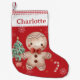 Add a touch of festive cheer to your home with our delightful Christmas stocking, featuring a cute gingerbread man and a Christmas tree with festive details. The stocking features a white cuff and a red gingham border, perfect for personalising with a name. Great for children and the whole family, this stocking is a cherished keepsake that will bring joy to your holiday celebrations for years to come. Fill it with holiday surprises to make Christmas morning extra special. Coordinating items available in-store! (c) The Happy Cat Studio