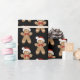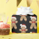 Cute gingerbread man cookie with Santa Claus cap on black background.