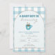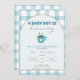 Cute blue gingham "A Baby Boy is Brewing" baby shower theme.