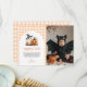 Cute Gingham Halloween Ghost 1st Birthday Photo Thank You Card