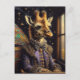 An adorable giraffe fairy in suit and bowtie sits on a train looking out the window AI generated art in an encaustic art style