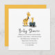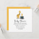 This cute baby shower invitation features a sweet parent and child giraffe illustration with modern hand lettered script typography, and a vibrant yellow back of the card. Perfectly suited for a jungle or safari themed shower. Adorable for a baby girl or boy!