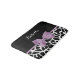 A cute black and white giraffe print bathmat with a girly lavender purple ribbon tied into a feminine bow. Personalise this pretty animal print design by adding your name. Flat printed image, not actual bow.