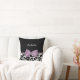 A cute black and white giraffe print throw pillow with a girly lavender purple ribbon tied into a feminine bow. Personalise this pretty animal print design by adding your name. Reverse side has a black and white giraffe pattern. Flat printed image, not actual bow.