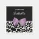 Cute black and white giraffe print paper napkins with a girly lavender purple ribbon tied into a feminine bow. Personalise this pretty animal print design by adding the name of the party girl. Flat printed image, not actual bow.