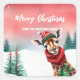Cute Giraffe safari zoo Santa Christmas party kids Square Sticker