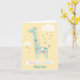 Cute Giraffe with clouds and stars on pastel yellow dot background. With Welcome to the world text