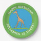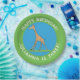 From the happy safari. This cute giraffe has a butterfly on his nose with a blue background.