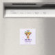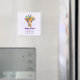 A magnet with a whimsical watercolor illustration featuring a giraffe face wearing a pretty spring floral crown. Colourful and cute.