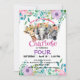 Cute Giraffe Zebra jungle Animals Birthday Floral Invitation