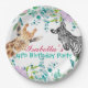 cute Giraffe zoo animals jungle Floral Birthday Paper Plate