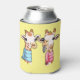 Hand-drawn can cooler design featuring an image of two giraffes from the neck up with white fur and brown splotch markings, wearing scarves (blue scarf on left giraffe and pink scarf on right giraffe), and one giraffe sticking its tongue out. Printed on a light yellow background or the colour of your choice.