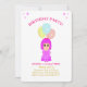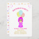 Cute girl 3rd birthday Invitation with a lovely girl dressed on pink and three multicolored balloons. And multicolored confetti on the back side. All texts and numbers are ready to be personalised.