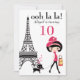 This adorable design features a girl and cat in Paris walking in front of the Eiffel Tower. Easily personalise this birthday invitation with your party information in chic text.