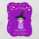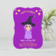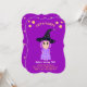 Cute girl birthday Invitation with star pattern on royal purple background on the back side. Ideal for Birthdays and Halloween party. All texts and numbers are ready to be personalised.