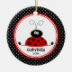 Dated Cute red & black ladybug girl Christmas Ornament set on a black & white polka dotted background. A Wonder Christmas gift sure to be treasured for many years to come.