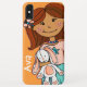 Cute girl cuddling rabbit graphic orange Case-Mate iPhone case